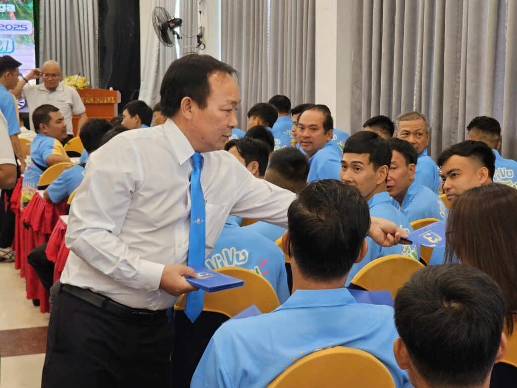 Ngay sau đó, Ông Nguyễn Ngọc Đồng – Tổng Giám Đốc đã có buổi gặp gỡ thân mật cùng toàn thể đội ngũ lái xe VF3. Ông gửi lời động viên, chia sẻ những định hướng phát triển và trực tiếp trao lì xì may mắn đến từng anh em lái xe, thể hiện sự quan tâm và trân trọng của Ban lãnh đạo đối với lực lượng nòng cốt mang dịch vụ chất lượng đến khách hàng.